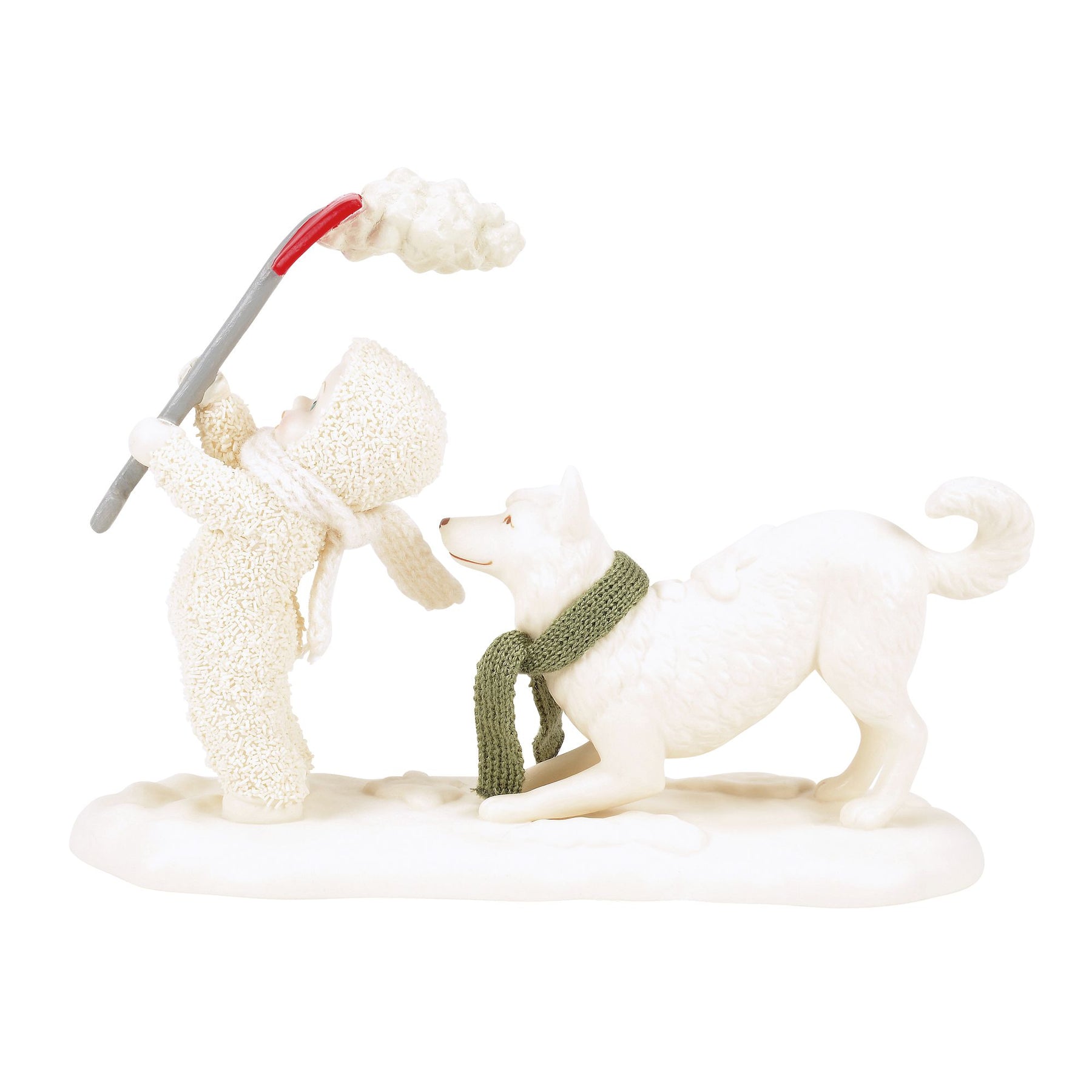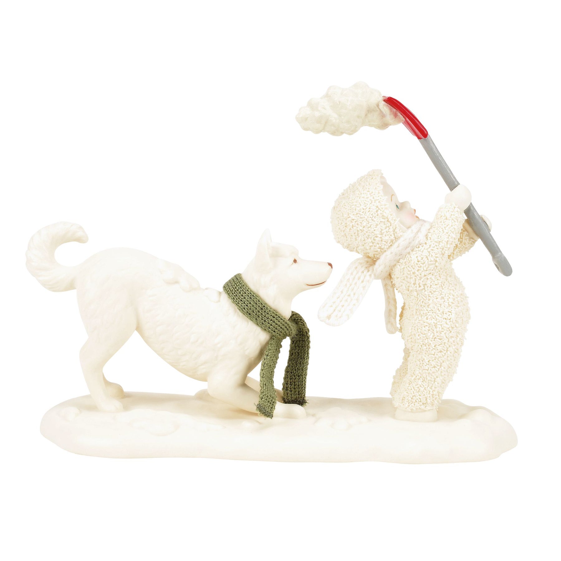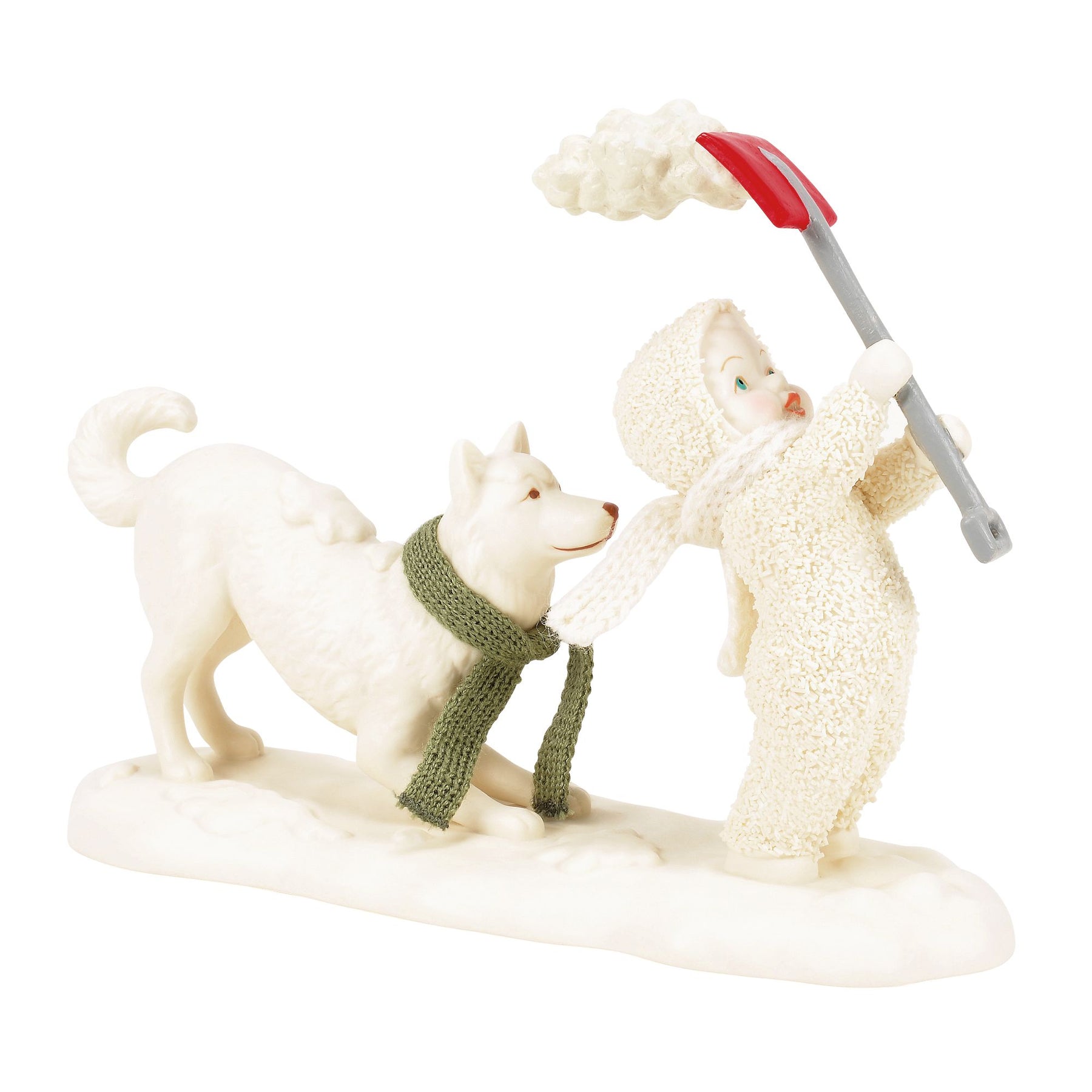 These two need to establish a better shoveling system. As soon as Snowbaby goes to toss a scoopful, dog's waiting to play in it!Please note that Department56.com is supported by a network of participating retail partners to assist with order fulfillment. It is possible your order may be fulfilled by a participating approved Enesco retailer, and your order and shipping information will be provided to the retailer.