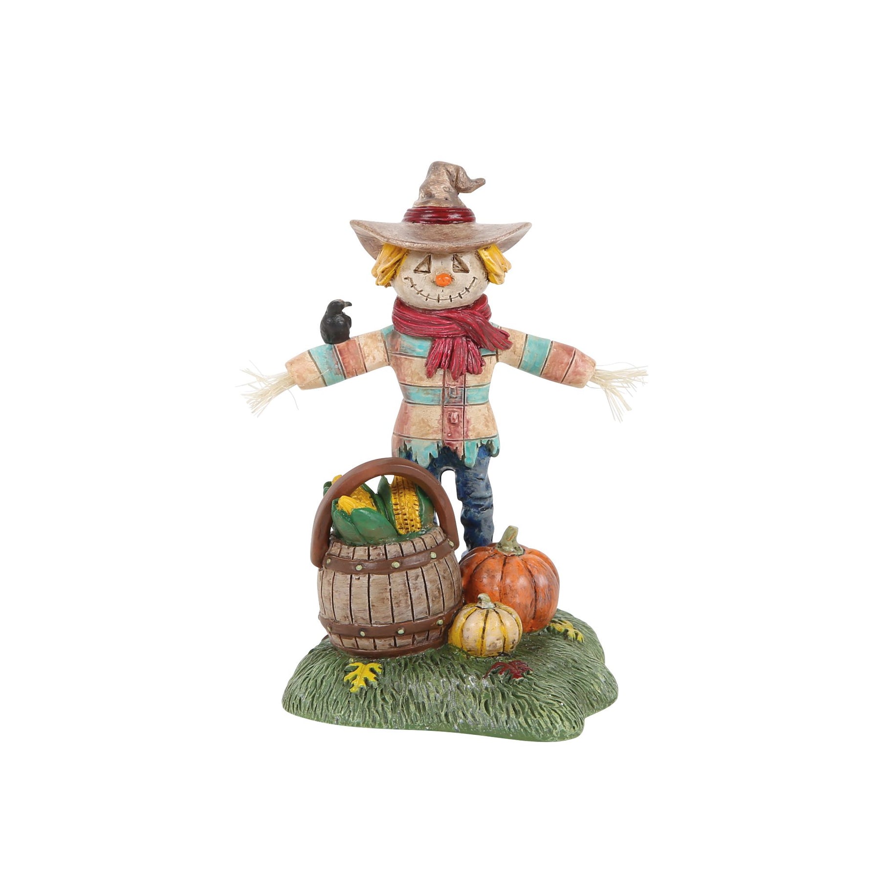 Meet your new harvest helper! This friendly scarecrow, with a basket full of corn and colorful pumpkins, brings farmhouse joy to your fall decor.Please note that Department56.com is supported by a network of participating retail partners to assist with order fulfillment. It is possible your order may be fulfilled by a participating approved Enesco retailer, and your order and shipping information will be provided to the retailer.